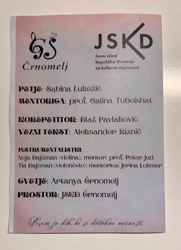 Iskrene čestitke Emi in njeni korepetitorki Katalin Peter kakor tudi mentorici Nataši Paklar za krasen recital.