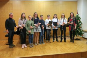 V ponedeljek, 17. 12. 2018, ob 18h je v dvorani Glasbene šole Črnomelj potekal razredni nastop učencev klarineta od 4. do 7. razreda iz Črnomlja in obeh podružnic, Semiča in Metlike. S čudovitimi zvoki Greyevega Valčka so nas v večer popeljali kvartet klarinetov v sestavi Ive Pezdirc, Alexa Ferfolje in Sare Absec (Nežo Žalec sem zaradi bolezni menjala jaz). Nato so s solo točkami ob spremljavi Andreja Kuniča na klavirju nastopili Bor Rjavec, Sara Absec, Elis Regina Baškovič, Tjaša Vraničar, Zoja Čadonič, Iva Pezdirc in Alex Ferfolja. Večer je zaključil kvartet klarinetov s čudovito skladbo Sveta noč.