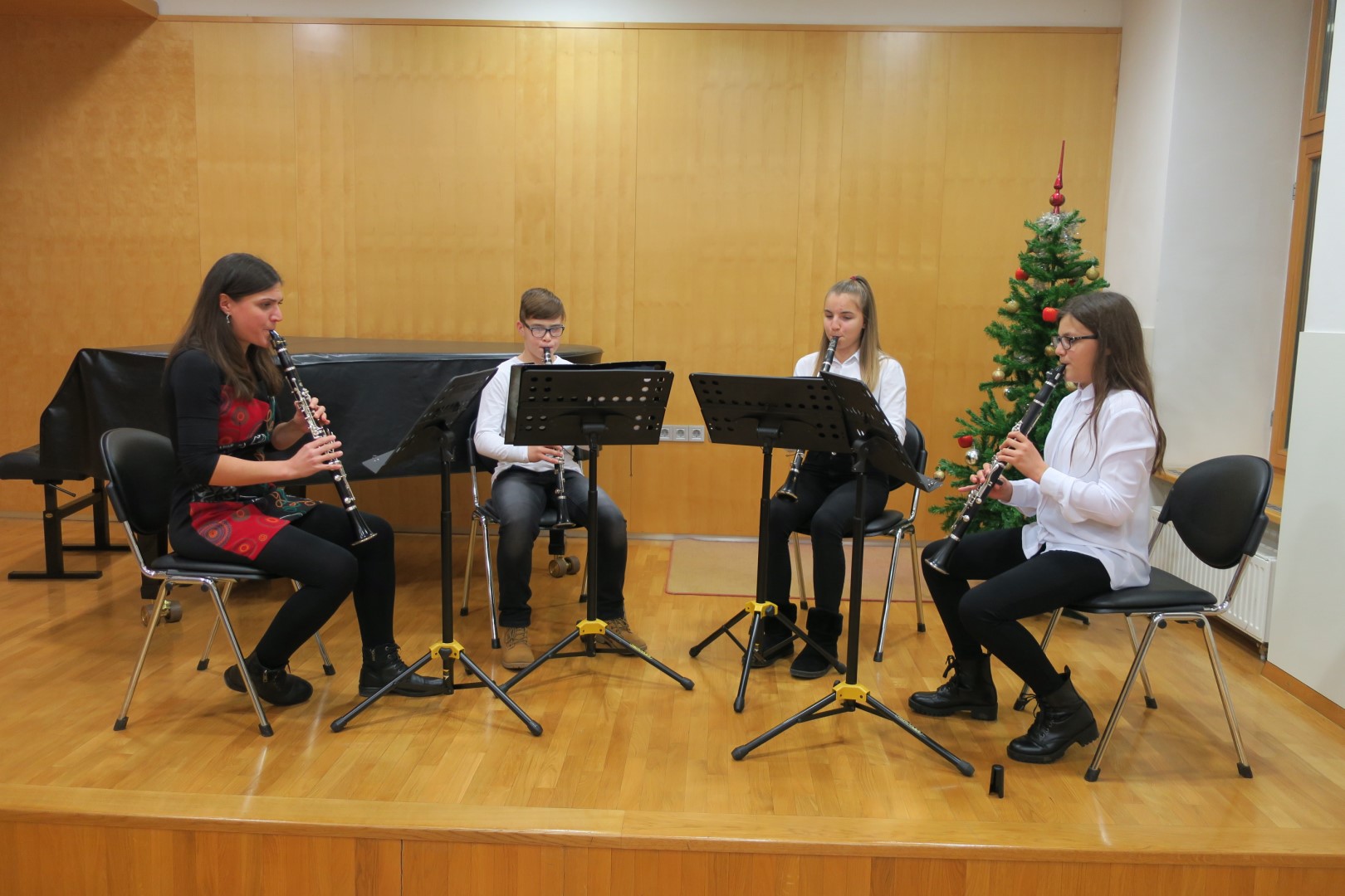 V ponedeljek, 17. 12. 2018, ob 18h je v dvorani Glasbene šole Črnomelj potekal razredni nastop učencev klarineta od 4. do 7. razreda iz Črnomlja in obeh podružnic, Semiča in Metlike. S čudovitimi zvoki Greyevega Valčka so nas v večer popeljali kvartet klarinetov v sestavi Ive Pezdirc, Alexa Ferfolje in Sare Absec (Nežo Žalec sem zaradi bolezni menjala jaz). Nato so s solo točkami ob spremljavi Andreja Kuniča na klavirju nastopili Bor Rjavec, Sara Absec, Elis Regina Baškovič, Tjaša Vraničar, Zoja Čadonič, Iva Pezdirc in Alex Ferfolja. Večer je zaključil kvartet klarinetov s čudovito skladbo Sveta noč.